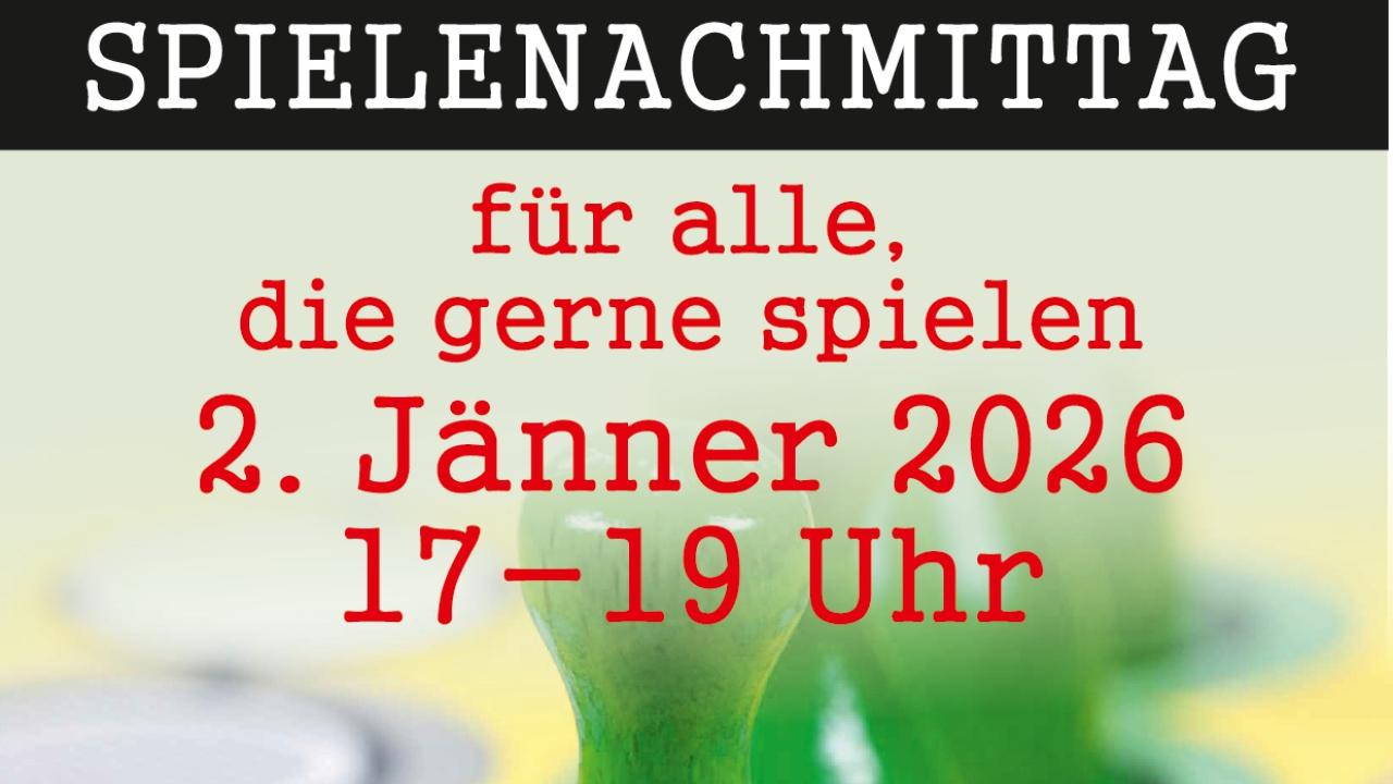 02.01.2026 Spielenachmittag Alle, die gerne spielen, sind am Freitag, 02.01.2026 von 17-19 Uhr herzlich eingeladen, in die Bücherei zu kommen.Alte Spiele wieder entdecken - neue ausprobieren - einfach vorbeikommen und mitspielen. Wir freuen uns auf Euch!
